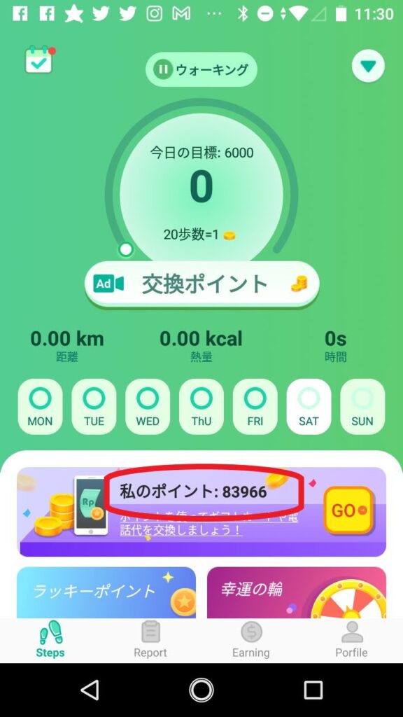 ちなみに、衝撃的なことにはじめは10歩数=1ポイントだったのが、いつの間にか20歩数=1ポイントに変わっていました!なんということだ…